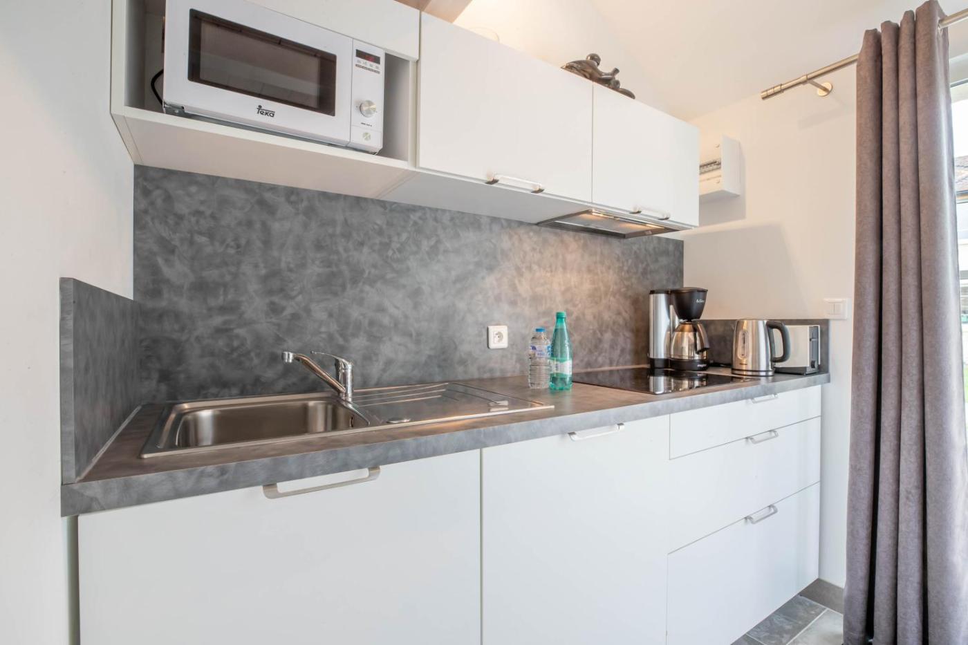 Les hébergements comprennent la climatisation et une télévision à écran plat. Vous bénéficierez d’une cuisine entièrement équipée avec un coin repas, ainsi que d’une salle de bains privative comportant une douche, des articles de toilette gratuits et un sèche-cheveux. Un réfrigérateur, un four et un micro-ondes sont également à votre disposition, de même qu’une machine à café et une bouilloire.