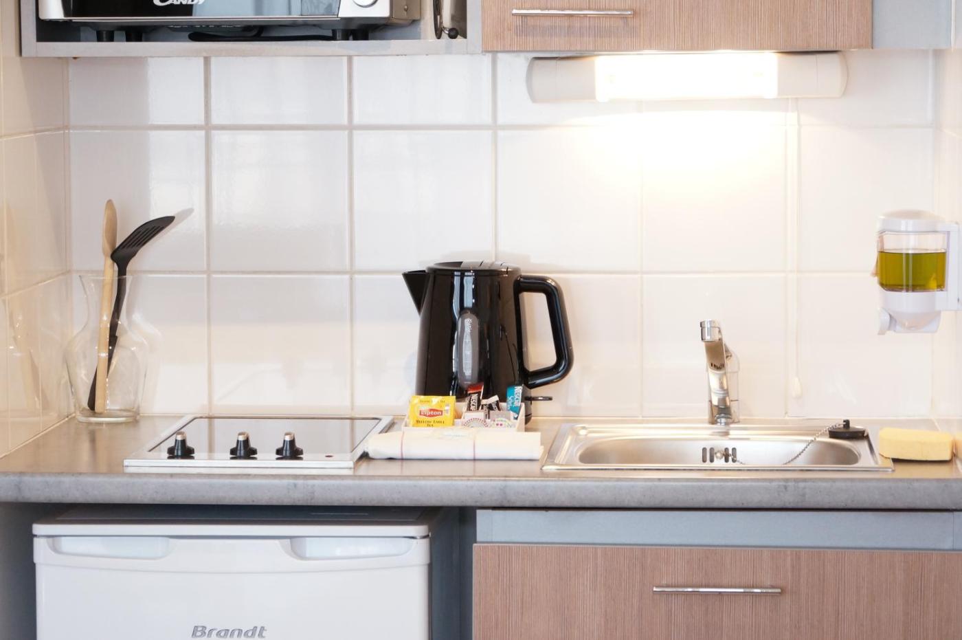 Les studios modernes de létablissement comprennent également une kitchenette équipée dun micro-ondes, dun lave-vaisselle, dun réfrigérateur et dun plateaubouilloire.