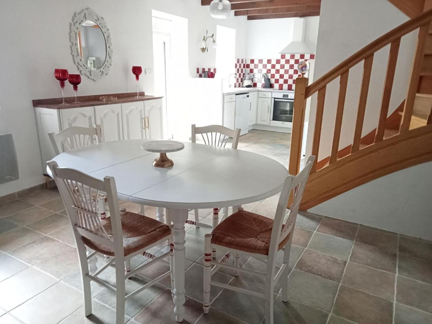 Maison 2 Chambres. Guests will have a special experience as this holiday home features a fireplace. Featuring a private entrance, this holiday home is comprised of 1 living room, 2 separate bedrooms and 1 bathroom with a shower and a hairdryer. Guests will find a stovetop, a refrigerator, a dishwasher and kitchenware in the kitchen. The holiday home also has a barbecue. Boasting a terrace with garden views, this holiday home also offers a washing machine and a flat-screen TV. The unit offers 3 beds.