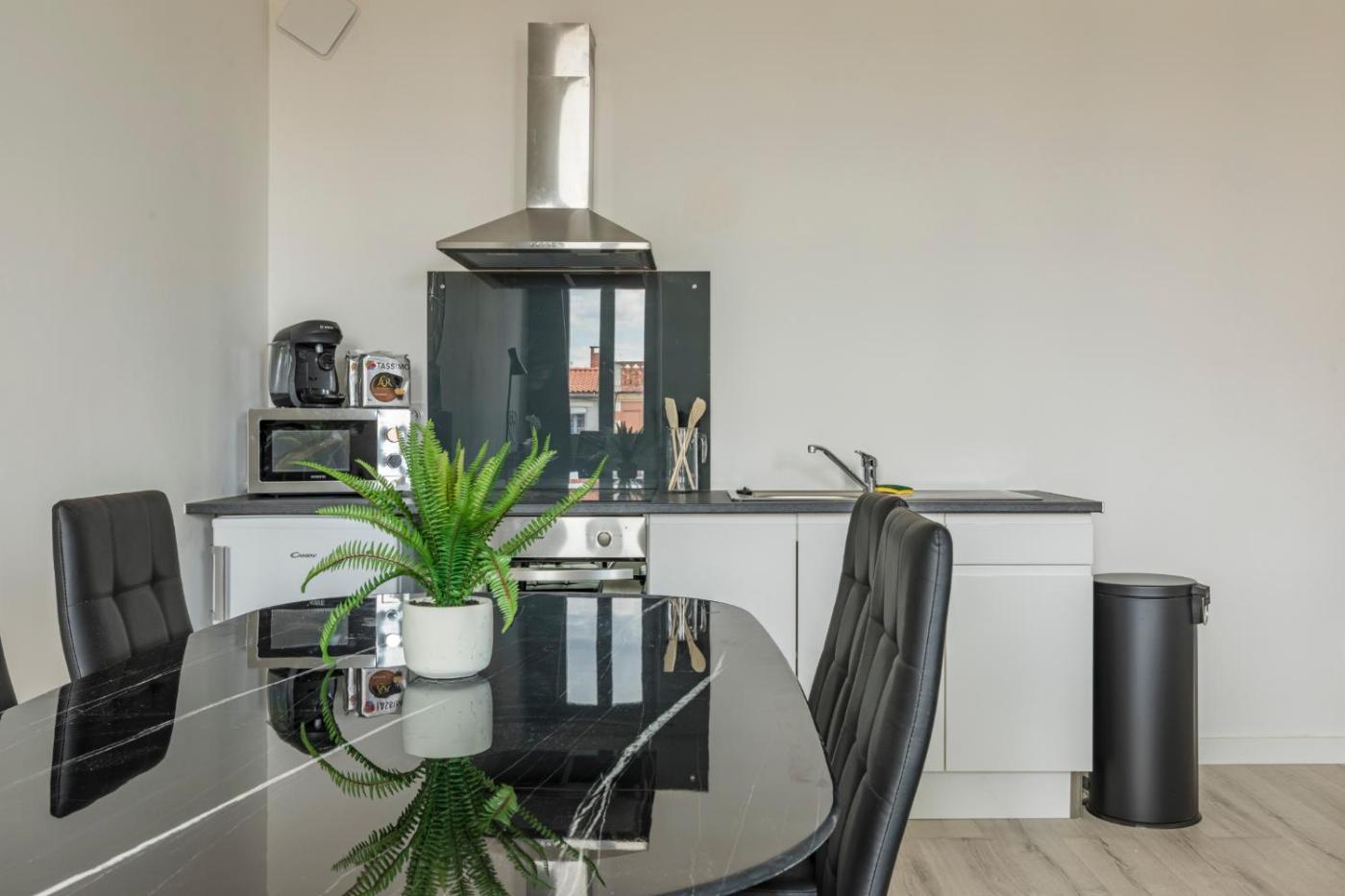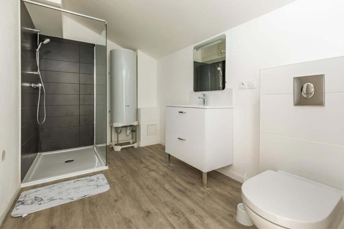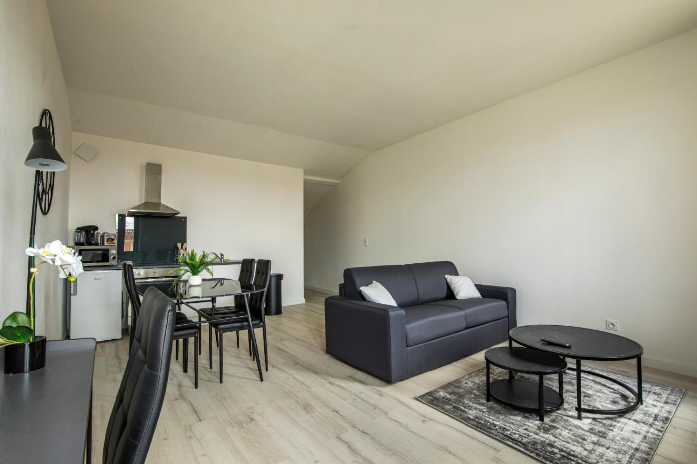 Appartement 1 Chambre. This apartment comes with 1 living room, 1 separate bedroom and 1 bathroom with a shower and a hairdryer. Guests can make meals in the kitchen that features a stovetop, a refrigerator, kitchenware and an oven. The apartment features a washing machine, a coffee machine, a seating area, a dining area, as well as a flat-screen TV. The unit has 2 beds.