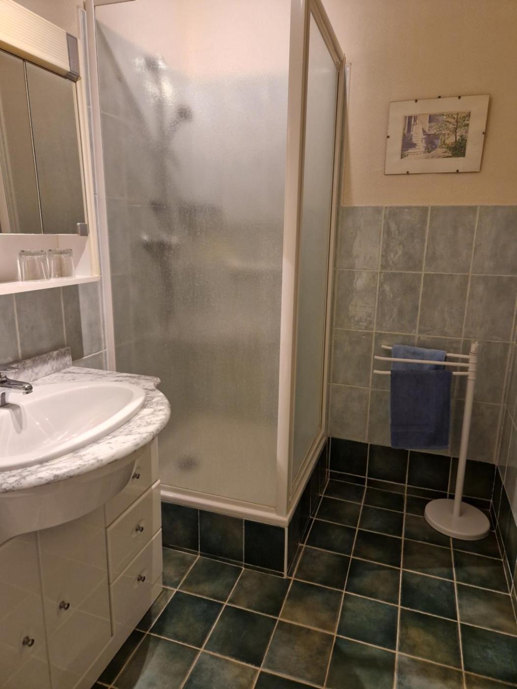 Chambre Familiale avec Douche. Providing free toiletries, this family room includes a private bathroom with a walk-in shower and a hairdryer. The family room provides a tea and coffee maker, a wardrobe, a high chair for children along with a carpeted floor. The unit offers 3 beds.