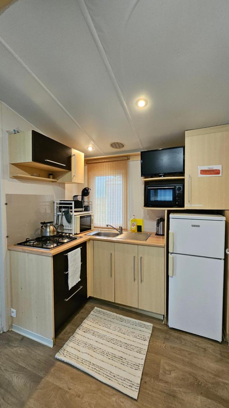 Mobile Home. Boasting a private entrance, this air-conditioned mobile home features 1 living room, 2 separate bedrooms and 1 bathroom with a shower and a hairdryer. Guests will find a stovetop, a refrigerator, kitchenware and a microwave in the kitchen. The mobile home also comes with a barbecue. Featuring a terrace with garden views, this mobile home also features a tea and coffee maker and a flat-screen TV. The unit has 4 beds.