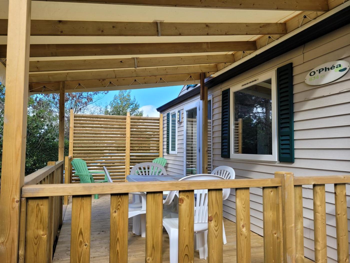 Mobile Home. This air-conditioned mobile home includes 1 living room, 3 separate bedrooms and 1 bathroom with a shower. In the fully equipped kitchen, guests will find a stovetop, a refrigerator, kitchenware and a microwave. Boasting a terrace with garden views, this mobile home also offers a tea and coffee maker and a TV. The unit has 5 beds.