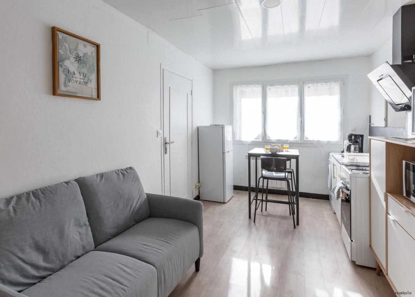 Appartement 1 Chambre. The fully equipped kitchen features a stovetop, a refrigerator, kitchenware and an oven. The apartment provides a washing machine, a tea and coffee maker, a dining area, heating, as well as a flat-screen TV. The unit offers 1 bed.