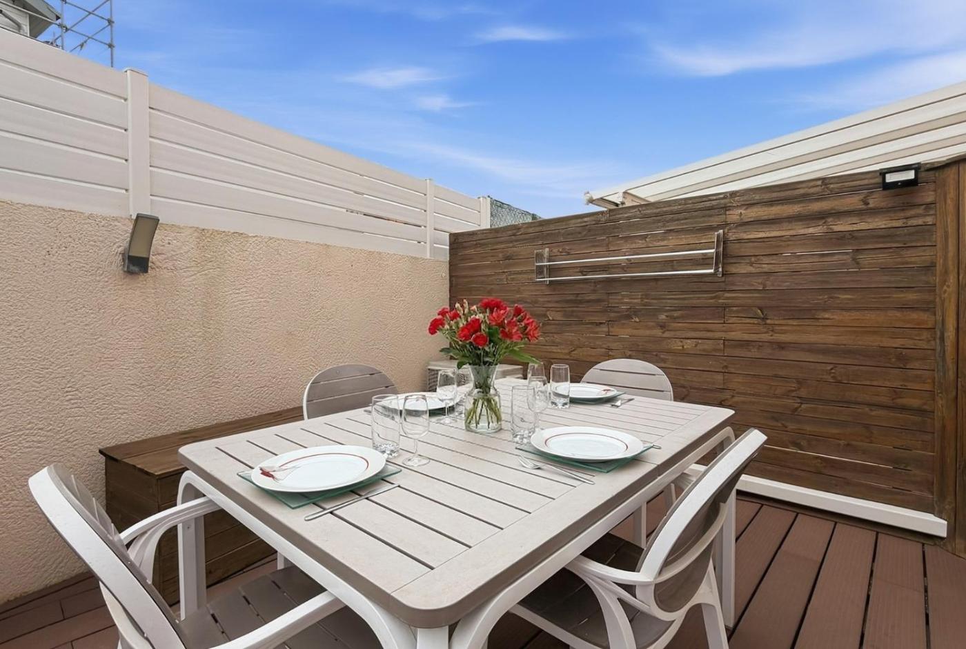 Appartement 1 Chambre avec Terrasse. Boasting a private entrance, this air-conditioned apartment includes 1 living room, 1 separate bedroom and 1 bathroom with a shower and a hairdryer. Guests will find a stovetop, a refrigerator, a dishwasher and kitchenware in the fully equipped kitchen. The apartment also features a barbecue. Featuring a terrace, this apartment also offers a washing machine, a tea and coffee maker and a flat-screen TV. The unit has 2 beds.