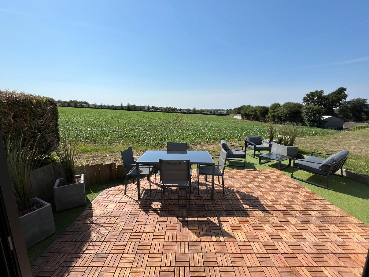 Maison 2 Chambres. Boasting a private entrance, this holiday home features 1 living room, 2 separate bedrooms and 1 bathroom with a shower and a hairdryer. Guests will find a stovetop, a refrigerator, a dishwasher and kitchenware in the well-fitted kitchen. The holiday home also comes with a barbecue. Featuring a terrace with garden views, this holiday home also features a tea and coffee maker and a flat-screen TV. The unit has 2 beds.