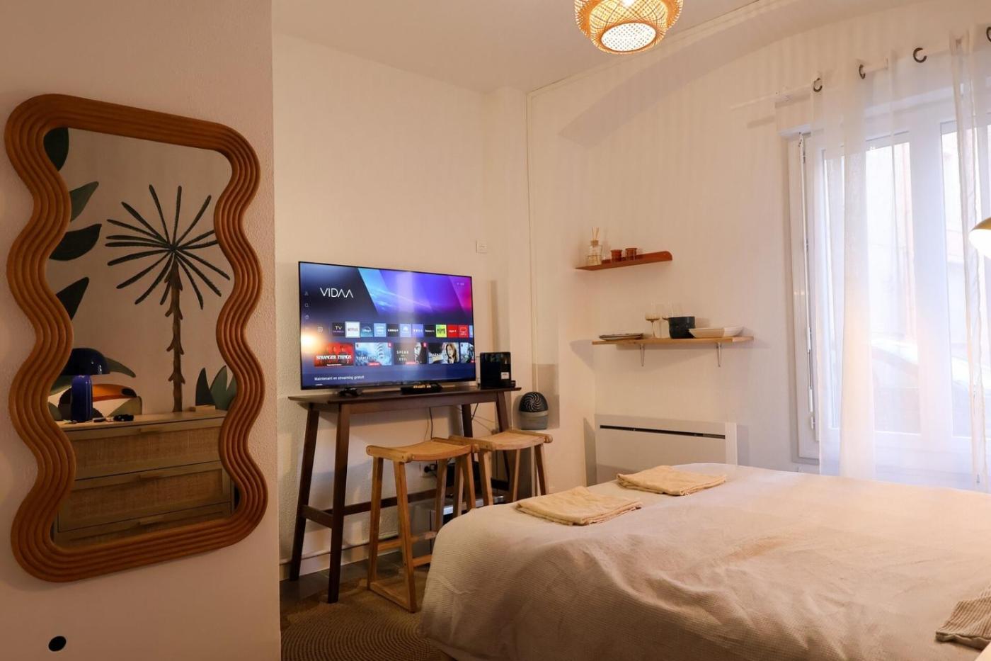 Appartement 1 Chambre. Boasting a private entrance, this apartment features 1 bedroom, 1 bathroom and a kitchen. The apartments kitchen, which features kitchenware, is available for cooking and storing food. This apartment has a dining area, heating and a flat-screen TV. The unit has 1 bed.