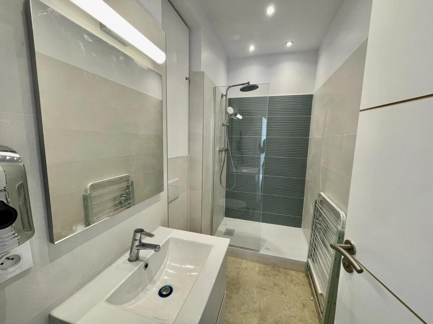 Appartement 1 Chambre. This air-conditioned apartment features 1 living room, 1 separate bedroom and 1 bathroom with a shower. The fully equipped kitchen has a stovetop, a refrigerator, kitchenware and a microwave. The apartment features a flat-screen TV with cable channels, a washing machine, a tea and coffee maker, a seating area as well as sea views. The unit has 2 beds. ;