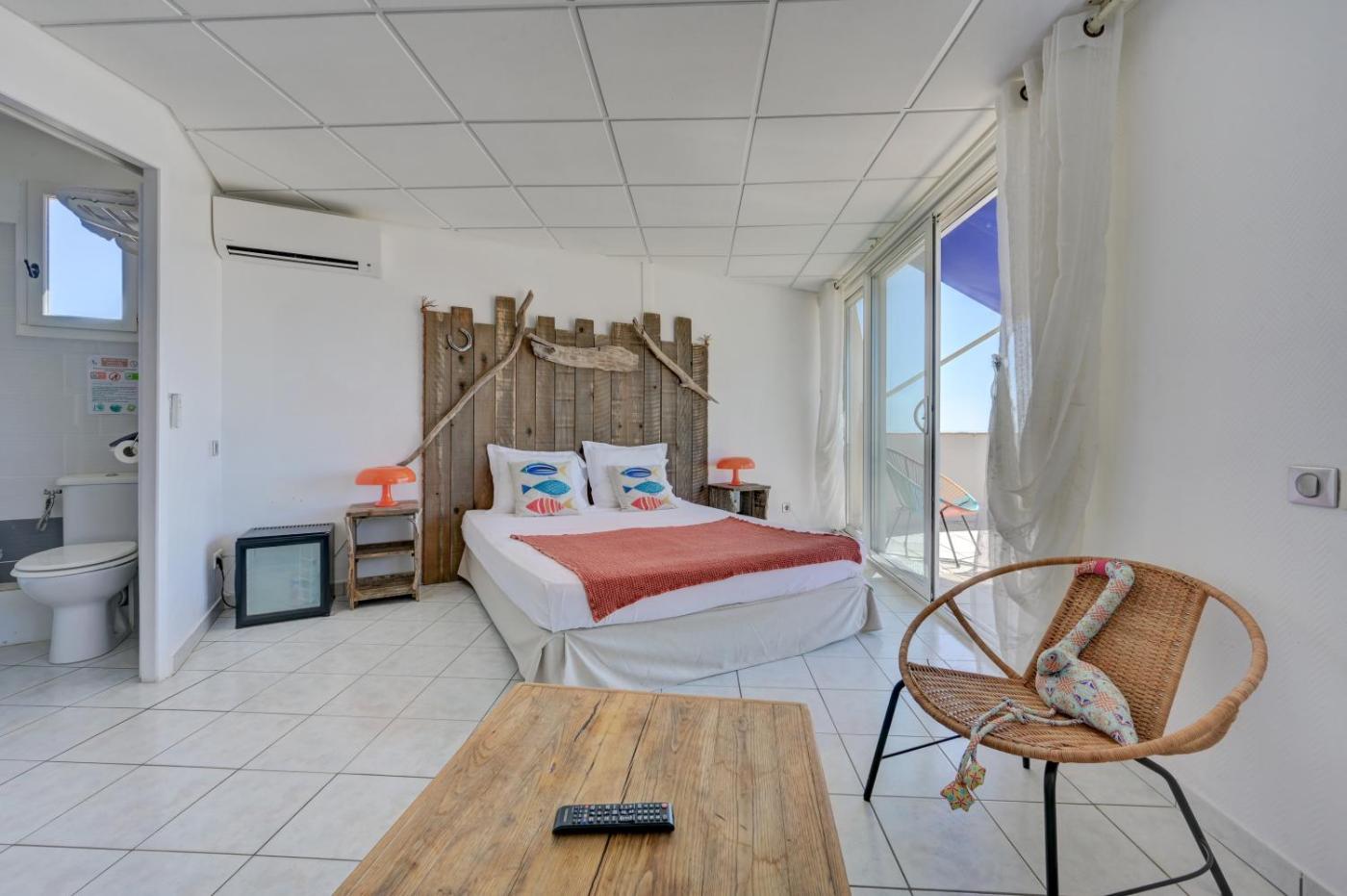 Chambre Double avec Terrasse. Dotée d’une télévision par câble à écran plat, cette chambre double climatisée dispose d’une terrasse avec vue sur la mer et d’une salle de bains privative. Ce logement comprend 1 lit.