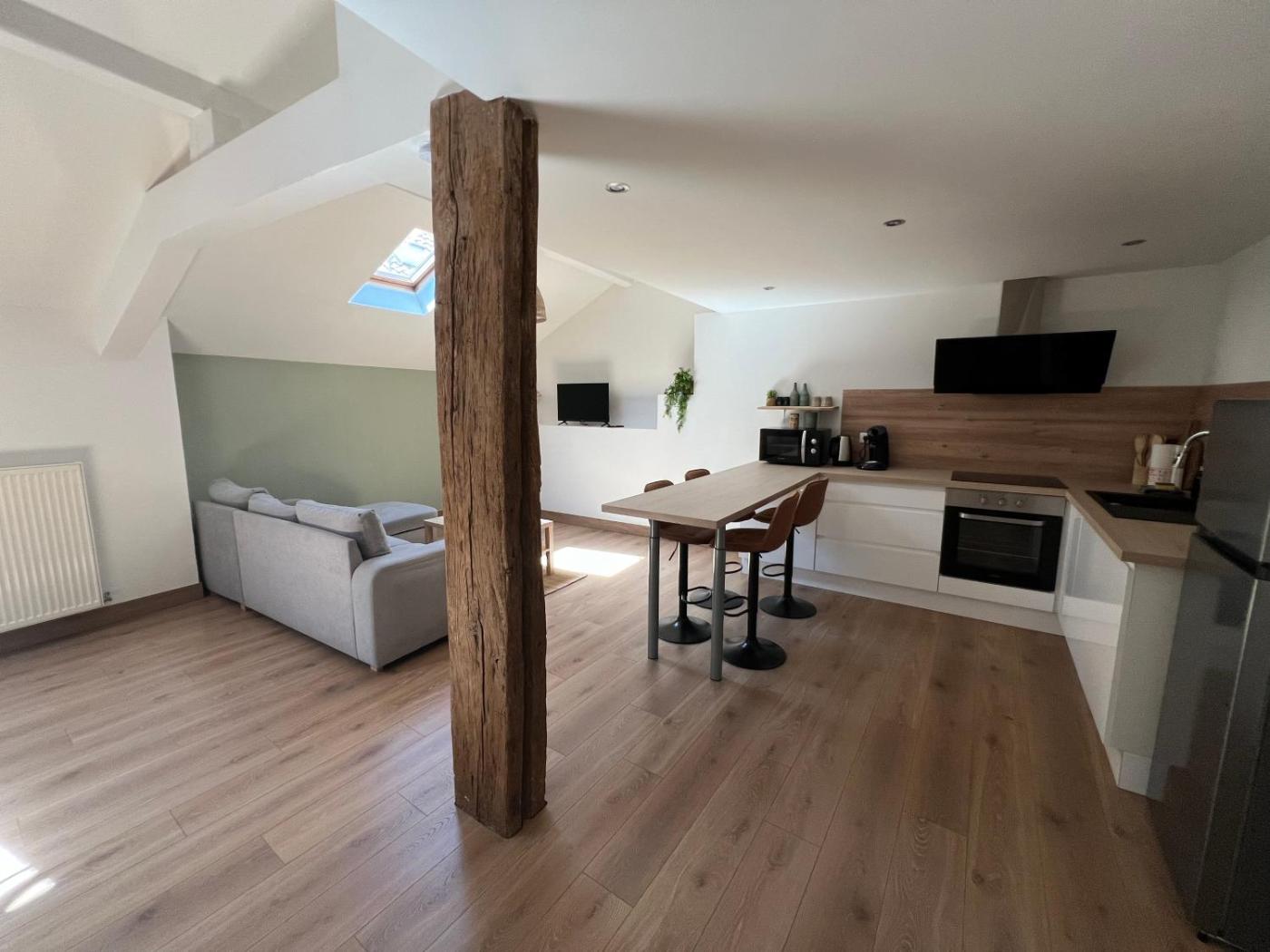 Appartement 1 Chambre. This apartment features 1 living room, 1 separate bedroom and 1 bathroom with a shower and a hairdryer. Guests can make meals in the kitchen that features kitchenware, an oven, a microwave and a toaster. The apartment has parquet floors, a seating area with a flat-screen TV with streaming services, a washing machine, a tea and coffee maker, as well as a dining area. The unit has 2 beds.
