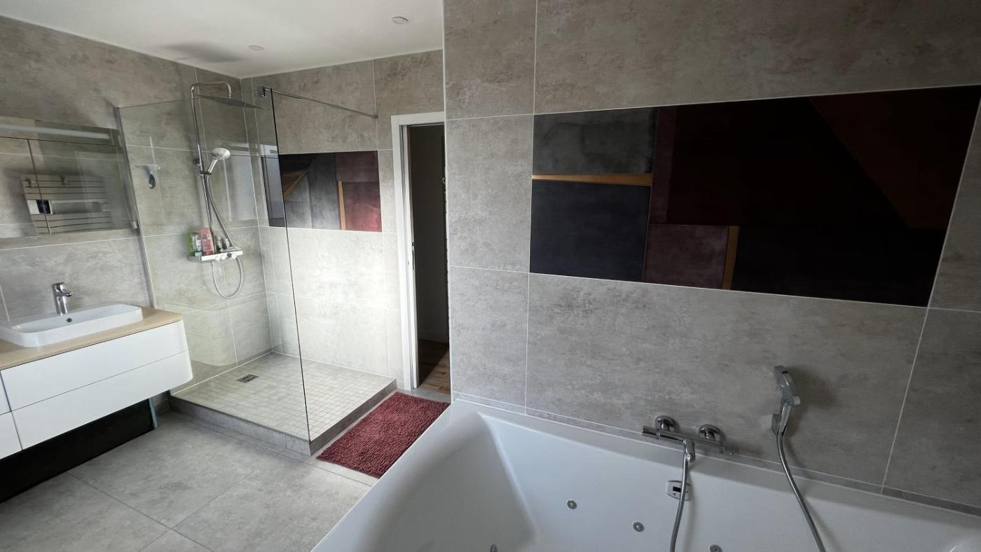 Maison 3 Chambres. The hot tub is the standout feature of this holiday home. Boasting a private entrance, this spacious holiday home also features 3 bedrooms, a seating area and 2 bathrooms with a walk-in shower and a bath. In the kitchen, guests will find a stovetop, a refrigerator, a dishwasher and kitchenware. The air-conditioned holiday home features a flat-screen TV with streaming services, a washing machine, a tea and coffee maker, a dining area as well as garden views. The unit has 3 beds.